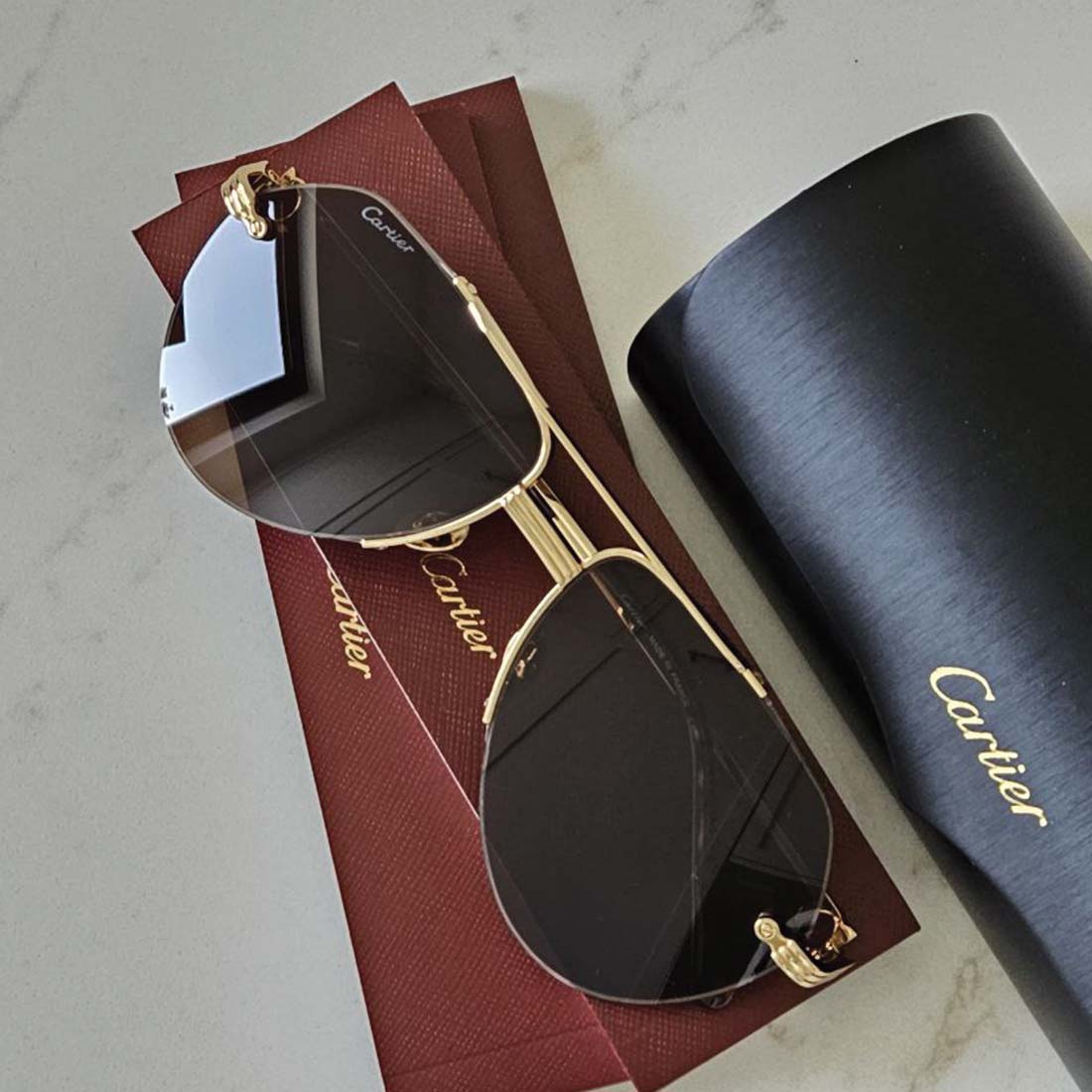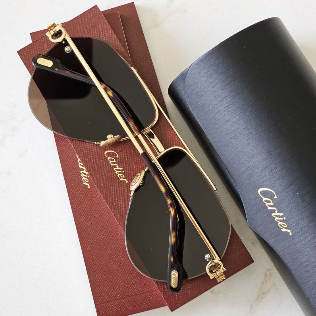 Polished metal accents and signature Cartier screws at the temple