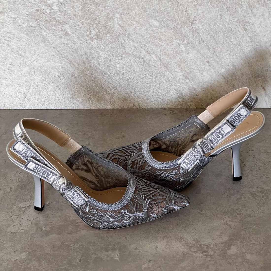 Design: Signature Dior slingback pump with pointed toe and embroidered J’Adior ribbon