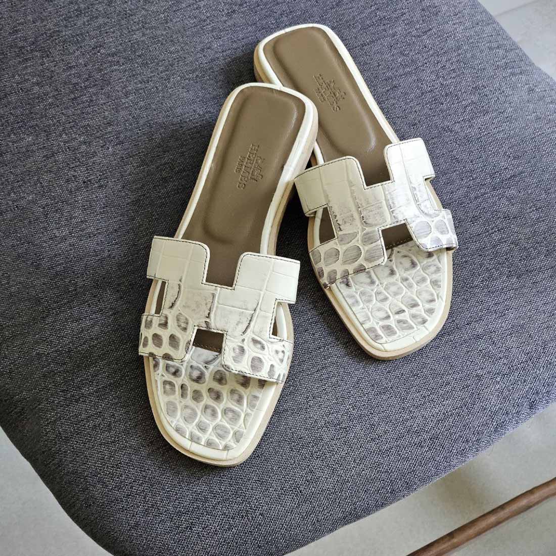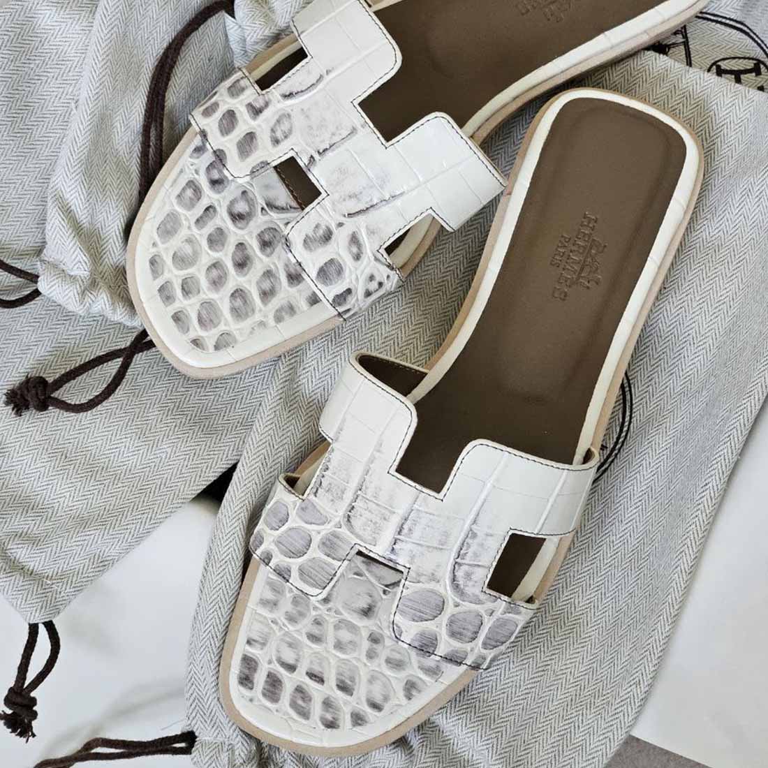Hermès Oran Sandal White Gradient Croc-Pattern – Super Master Quality