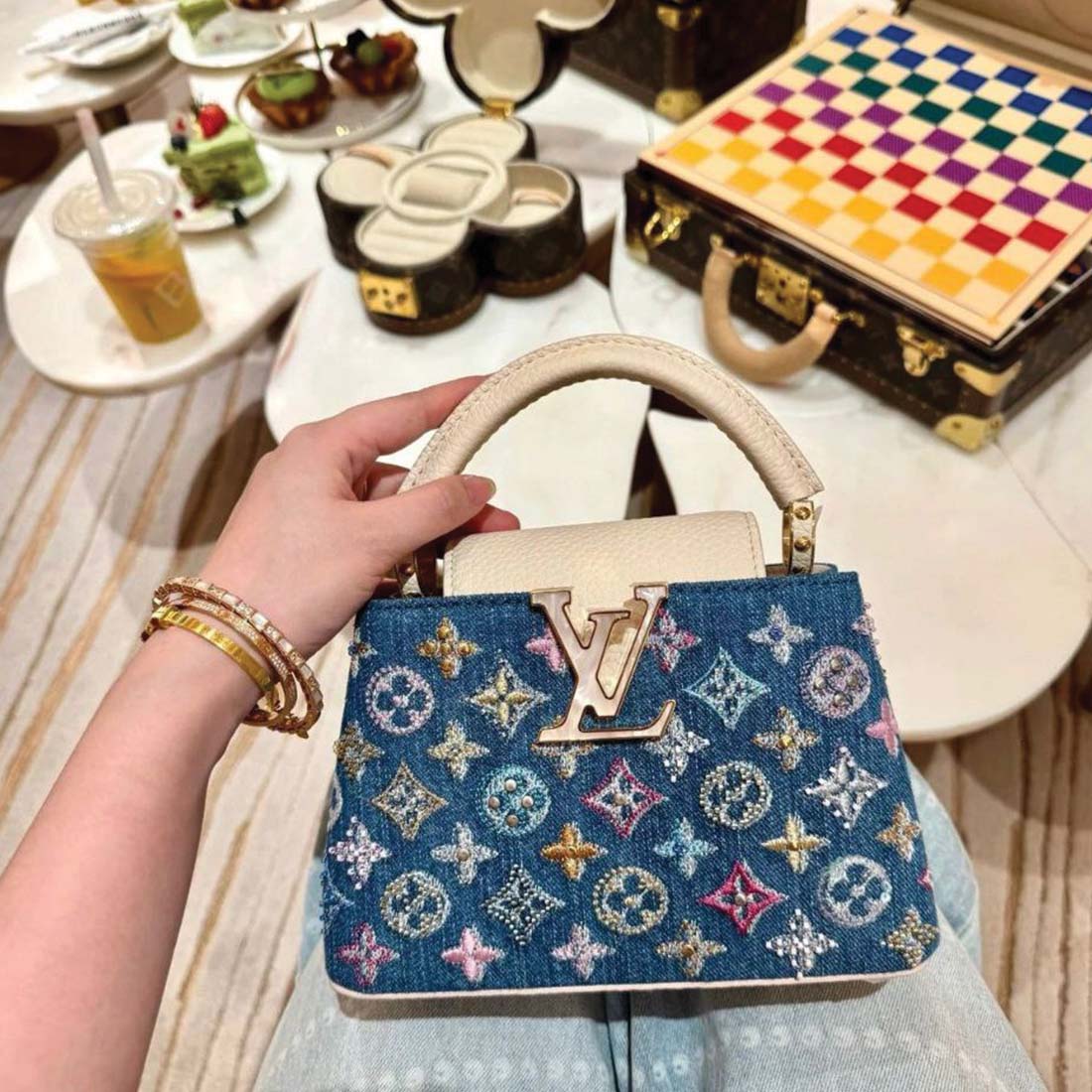 This mini version of the iconic Capucines bag brings together clean structure, sculpted lines, and signature detailing — all in a perfectly petite size. With its top handle, optional shoulder strap, and bold LV accent, it moves effortlessly from day to night. A quiet symbol of refinement for those who carry confidence in every look.