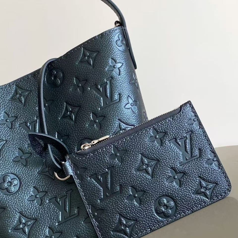 Discover refined luxury with this elegant Louis Vuitton Monogram Empreinte set, featuring a structured shoulder bag and a perfectly coordinated zip pouch. Crafted in rich deep navy embossed leather, this duo embodies modern sophistication with iconic heritage detailing.