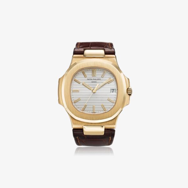 The Patek Philippe Nautilus 5711J-001 stands out with its 40mm yellow-gold case, horizontal embossed dial, and refined integrated bracelet. A perfect balance of sportiness and elegance, this iconic design is powered by an automatic movement for smooth, precise timekeeping.